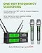 😀【GET RID OF ANNOYING FREQUENCY INTERFERENCE 】: One key searching clean frequency——Long-pressing the "set "button to search for the cleanest frequency under the current environment. With 200 UHF channels, no need to worry about the interference issue even stacking several wireless machines(Max 5 stacking systems)