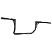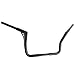 14" rise. 11" backward sweep. 1 1/4"-diameter. Center section tapers to 1" so that standard handlebar controls fit.