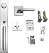 Uniquely crafted low profile XL front door handles square shaped black exterior door handle front entrance set with 2 3/8 inch- 2 3/4 inch adjustable backset latch with square corner striker exterior door hardware front door handle sets front entry handle.
