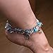 Stylish anklet set featuring one double layer silver chain and one single layer beaded, decorated with clam blue beads, dangling lifetree charm, starfish charm, and some leaf blades which make sounds with movements.