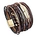 ❤️ GORGEOUS UNIQUE DESIGN ❤️ Our stylish & cute casual leather cuff bracelet features multiple strands of leather cords combination in different texture, adorned with fashionalble hammered metal and gold tone metal tube. Leather strands are crossing stacked and secured together into a one-piece wrap bracelet with a strong magnetic clasp. An overall handwoven and two times wrap around bracelet design ensures we conscientiously finish each piece