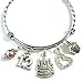 MEANINGFUL CHARMS: This lovely expandable bangle comes with a Swarovski Crystal Pearl, an 12 charm, a Happy Birthday cake charm, 3-D cupcake charm, and a rhinestone heart charm.
