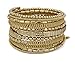 Global chic hand-made boho-inspired coil bracelet: gold-toned beads gathered on a coil wire instantly give any outfit a hint of heavy metal attitude mixed with ultra-chic style. This multi-coiled bracelet boasts silver beads in many sizes and textures.