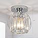 CRYSTAL SMALL CHANDELIER: Close to ceiling light design is perfect for vintage farmhouse and industrial decors. The chrome finish base and the sparkly crystal metal cage heighten the classic industrial look of this indoor lighting fixture.