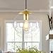 SOPHISTICATION AND DESIGN - Gold brass ceiling pendant light fixtures. Glass lampshade adopts the traditional hand glassblowing, releasing bright light effect. This hanging pendant light works with modern and transitional designs. Kitchen Pendant hanging light fixture combines black accents with an 8-inch, handmade clear glass globe.