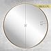 MINIMALIST STYLE ROUND MIRROR: By decorating with a round mirror, you add depth to your home and give it more life. The round mirror has a soft expression and the gold-colored frame and neat design feel elegant. Use it as a functional bathroom vanity mirror or as a decorative statement for your mantle, living room, or entryway