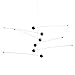 The first mobile by Ole Flensted, designed in 1970. Bars of light and heavy elements in dynamic tension suggests six planets with their moons - or perhaps different levels of the light and the dark sides of the personality? Also in a large size, FM-110b
