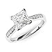 This solid solitaire 14k white gold simulated Princess-cut diamond engagement ring is highly polished. It is 4-V-prong set with 1.5 carat (7mm, or 0.28inches) Princess-cut clear simulated diamond. The band shank measures 2.5mm in width. There are 12 round simulated diamonds in total set in sides. The stone is AAAAA quality, reflecting the sparkle same as diamonds do, which is very nice and attractive, making the ring look like real diamond ring.