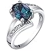 PEORA QUALITY CREATED ALEXANDRITE - Cut from the finest material, 1.50 Carats Oval Shape, 8x6mm, mesmerizing blue green to purple color changing hues with a brilliant sparkle. Changes color depending on lighting conditions. Accented with genuine Round Brilliant Cut Diamonds, 8 pieces, 1mm each.