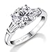 💎High Quality & Shiny Material: The 3 stone moissanite ring is handmade prong set with 2.0 carat brilliant round cut moissanite in D color VVS1 clarity + 2*0.4 carat trapezoid cut moissanite side stone. Crafted in genuine 925 sterling silver and plated with 18K white gold to ensure long-lasting shiny luster. Handmade-setting reduce the chance of falling stones.