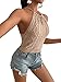 ❤️【Features】 Loose fit halter tank tops, cute sleeveless top, flowy pleated front summer tops, soft crew high neck shirts, back pearl button design (And One extra pearl button for spare).