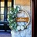 【TOKCARE Eucalyptus Wreath】: handmade eucalyptus wreath, made of high-quality silk flowers and a base wrapped with iron wire. It is matched with lambs ear leaves, small white flowers, willow leaves, boxwood and eucalyptus leaves. It is clearly layered, exquisite and durable. Has a detachable "hello" sign.