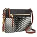 Genuine Leather & Fabric Crossbody Bag; Zipper Closure with Hidden Magnetic Snap; imported