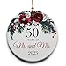 50 Years as Mr. and Mrs. Glossy Ceramic 2.875” round Christmas Ornament. Our designers have created a unique and unforgettable tree ornament that will immediately be a treasured keepsake. This ornament will bring joy to anyone.