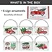 Red Truck Christmas Ornaments Set. Includes 6 styles colorful and charming truck Christmas ornaments.The metal sign displays a fun variety of trucks, tractor carrying Christmas trees as it hangs from a rustic wire.