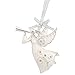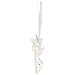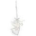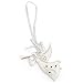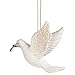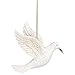 Charming ornament features flying white dove accented with silvertone sparkles and holding an olive branch
