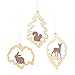 Woodland Animals Silhouette Ornament set features a baby doe, a rabbit, and a squirrel each with a different leaf outline and hanging string