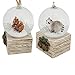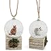 (Set of 2); Add some charm to your holiday tree with these decorative ornaments; Feature mini snow globes with racoon and squirrels on wood like bases
