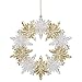 Decorate for the holidays with this beautiful gold and silver snowflake ornament; Festively shaped like a wreath; Accented with silver glitter