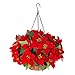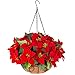 BEAUTIFUL HANGING FLOWERS: The beautiful HyeFlora artificial hanging silk poinsettia flowers in basket is made up of 4 branches high quality vivid artificial poinsettias, a 12 inch coconut lining chain basket and a hemisphericl shape foam.