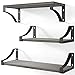 WALL SHELVES MATERIAL: these hanging wall shelves are made of composite wood and black metal bracket, which are sturdy enough to hold a certain amount of stuff about 12lb for each size of three wall shelves.