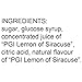 INGREDIENTS: Organic Cane Sugar, Organic Brown Rice Syrup, Citric Acid, Natural Flavors (Lemon Oils), Turmeric (Color)