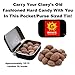 A Snack Hotline Hinged Tin is also included with your Claeys hard candies so you can carry them wherever you go! It fits just about anywhere...pocket-purse-coat-brief case-backpack or car. Each tin holds 10-12 pieces of hard candy. The dimensions of the tin are 3-11/16” Wide x 2-5/16” Deep x 13/16” High.
