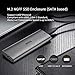 【Applicable SSD 】- This M.2 SSD Enclosure only for NVMe PCIE SATA M-Key / B+M connectors M.2 SSD. Applicable to sizes 2242 / 2260 / 2280 solid state drivers. Does not support M.2 PCIe AHCI SSDs, M.2 PCIe devices such as WiFi and capture cards, mSATA SSDs, and non-M.2 form factor SSDs. Note: NVMe and SATA SSD are not included.