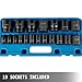 19 Sockets Included: This effort-saving 1/2'' drive impact socket set comes with 19 impact drive sockets: 3/8'', 7/16'', 1/2'', 9/16'', 5/8'', 11/16'', 3/4'', 13/16'', 7/8'', 15 / 16'', 1'', 1-1 / 16'', 1-1 / 8'', 1-3 / 16'', 1-1 / 4'', 1-5 / 16'', 1-3 / 8'', 1 -7/16'', 1-1 / 2''.