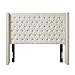 Modern contemporary headboard features button Tufted design with antique silver nail head trim. Fully upholstered and padded for its luxury appeal