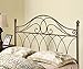 Antique inspired queen metal headboard with intricate scroll work details and stately posts accented by elaborate finials; Headboard Frame included
