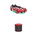 Wireless car remote control with LED-light and sound effects to mimic engine starting, accelerating, cruising, horn blaring, and fog/underbody lighting.
