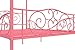 Sturdy metal frame with a heart scroll design and round finial posts.