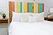 [BEACH HEADBOARD KING] Featuring an original headboard design with white, coral, green, yellow, and light natural wood colors handcrafted with real solid wood planks.