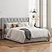 Design - Button tufted upholstered in grey headboard with silver nailheads along side panels for sturdy support