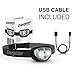 ☼ [CONVENIENT DESIGN]: Pivoting head offers comfortable hands free wear and included USB charging cable makes it easy to recharge this headlamp