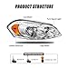 Specification: MOSTPLUS OEM Style Headlight Assembly with Black Housing Clear Lens Amber Reflector, High/Low Beam: 9005+H11 (Not included)