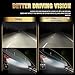 【VISIBILITY & SAFETY】-- High-intensity LED chips, super bright with 6000K cool white, 2200lm max output, and projector-style reflector delivers a flat and well-distributed light pattern, making it easier for you to see what lies ahead. No flickering. Whiter and brighter than stock halogen bulbs.