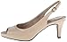 Peep-toe pump featuring concealed platform and buckle closure at slingback strap