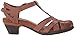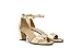 T-strap sandal in medium-low heel height featuring closed toe and open heel with cutouts