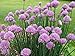 Common Chives will produce pink flowers, with hollow, tube like shoots that have a light onion flavoring.