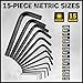 3 ) COMPLETE SIZES: 18 pc long arm ball end hex key wrenches include: 1/16, 5/64, 3/32, 1/8, 5/32, 3/16, 1/4, 5/16, 3/8 inch; 1.5, 2, 2.5, 3, 4, 5, 6, 8, 10 mm. Featuring the most common inch and metric hex wrench sizes, this wrench set can easily remove and install most socket cap screws found in cars, furniture, equipment and more.