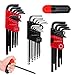 【PRODUCT INCLUDED】3 hex key sets with T-handle,13x inch hex key wrench with ball end:3/64, 1/16, 5/64, 3/32, 7/64, 1/8, 9/64, 5/32, 3/16, 7/32, 1/4, 5/16, 3/8 inch;13x metric hex key wrench with ball end: 1.27, 1.5, 2, 2.5, 3, 3.5, 4, 4.5, 5, 5.5, 6, 8, 10 mm;9x torx key wrench: T10,15,20,25,27,30,40,45,50