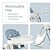 【REMOVABLE & ADJUSTABLE TRAY】The 4-positon adjustable & removable tray make this baby eating chair easily to clean after feeding by moving upper tray to the sink for a thorough rinse and baby will continue to play on the second ray.