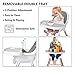 【REMOVABLE & ADJUSTABLE TRAY】The 4-positon adjustable & removable tray make this baby eating chair easily to clean after feeding by moving upper tray to the sink for a thorough rinse and baby will continue to play on the second ray.