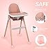 Safety and Stability: Designed with A-shape structure and sturdy skin-friendly material, the solid wooden legs provides great stability. 5-point harness make your kids safely seat on the chair.