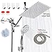 SHOWER HEADS WITH 30 SETTINGS: Each rain showerhead features 6 settings allowing you to choose between 30 full and combined water flow patterns! Settings of each shower include power rain, pulsating massage, hydrating mist, rain/massage, rain/mist and water-saving economy rain. This combo is equipped with 3-way water diverter with an angle-adjustable bracket that deliver an amazing shower Hotel Spa experience