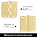 【STANDARD DOOR HINGES SIZE】:Get reliable and high-quality gold door hinges in a size of 3 1/2 x 3 1/2 inches, featuring 5/8" rounded corners and 6 holes. The brass door hinges includes 12 hinges and 84 screws for easy installation. Crafted from solid iron with a satin brass finish, these gold hinges ensure long-lasting durability. To maximize performance, we recommend using 3 hinges for each interior and exterior door
