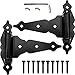 1 Pair of 8" Double Strap Hinges (2 Hinges), Black Powder Coated Wood Gate Hinges for Long Life