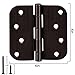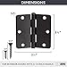 【Specification SIZE】Full Mortise & Loose Pin hinge Oil Rubbed Bronze door hinges is 3 1/2 x 3 1/2 inches and 0.087 inches thickness with 5/8" rounded corners and 6 holes.The Oil Rubbed Bronze door hinges pack includes 12 hinges and 84 free screws. Door hinges are made of high-quality reliable flat iron with a protective Oil Rubbed Bronze finish. We recommend 3 hinges for each interior and exterior door.